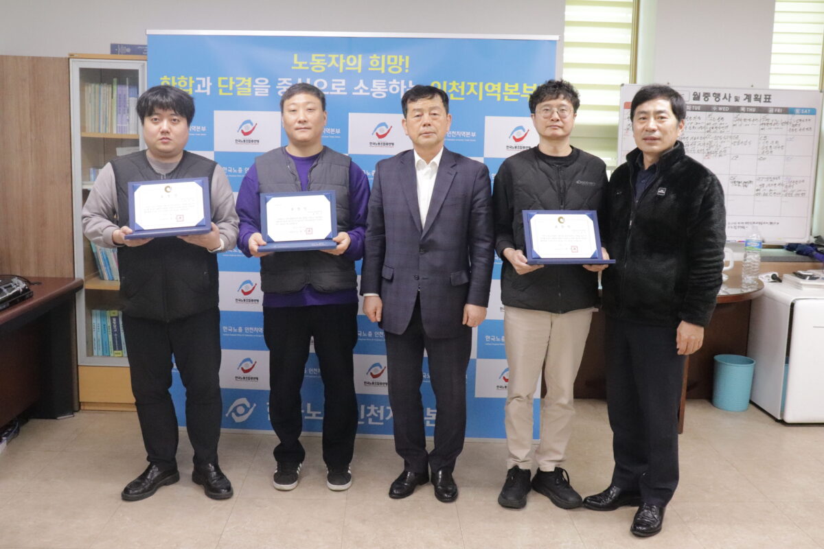 2026.02.13 한국노총 인천지역본부 사무처 직원 표창장 수여