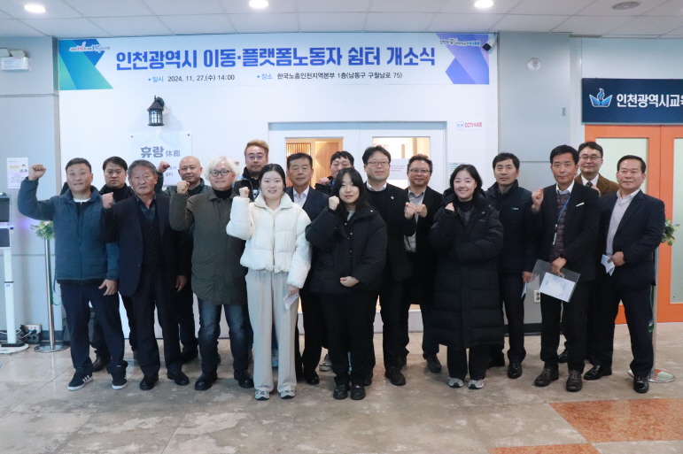 인천광역시는11월 27일(수) 남동구 남부근로자종합복지관 1층에 이동·플랫폼 노동자를 위한 쉼터를 개소했다고 밝혔다.